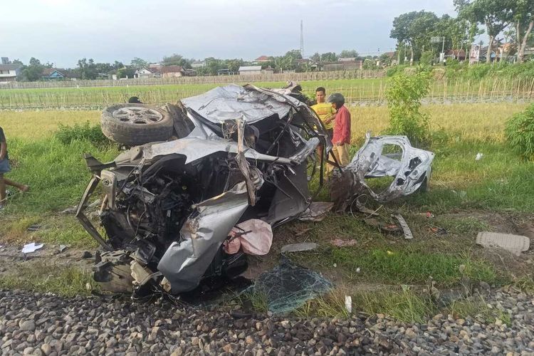 Toyota Agya ditumpangi dua sales obat herbal tak berbentuk hingga mirip kaleng rombeng, ditabrak KA Gaya Baru Malam Selatan di Klaten