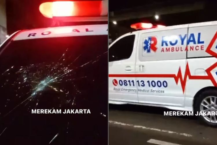 Orang kebal hukum timpuk kaca ambulans Hyundai H-1 pakai batu hingga pecah di Cipinang Cempedak, Jatinegara Jakarta Timur