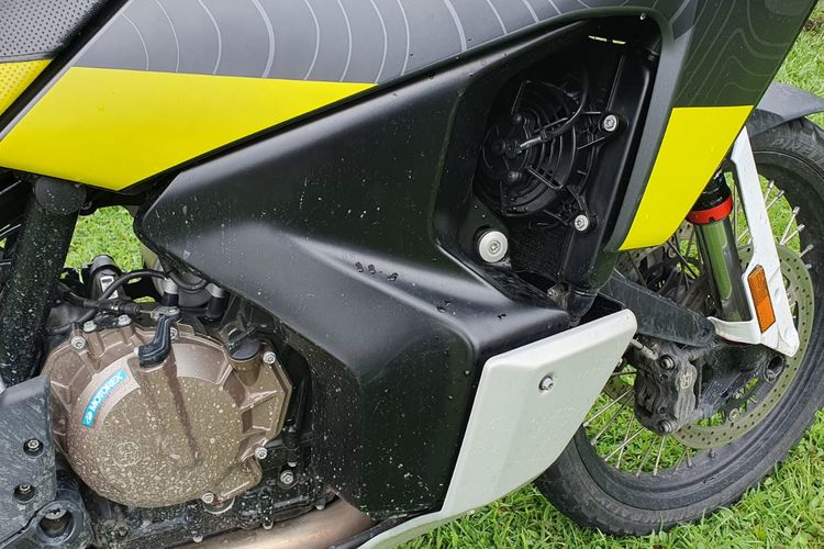 Pada umumnya tangki bensin motor batangan posisinya ada di atas mesin, tapi beda dengan tangki milik Husqvarna Norden 901.