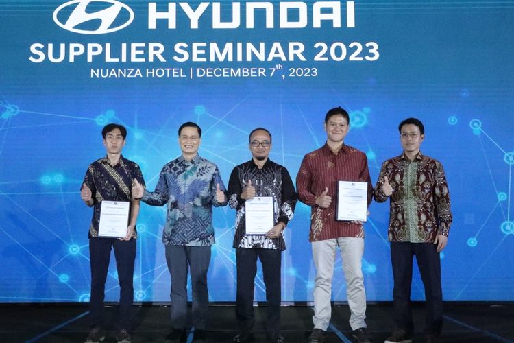 tiga pemasok komponen lokal Hyundai dihadiahi sertifikat “Kapabilitas Desain Mandiri” oleh Hyundai Motor Manufacturing Indonesia (HMMI)