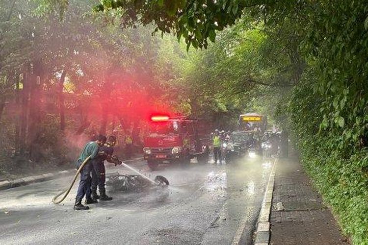 Yamaha NMAX dibawa bocah SMP hangus di tengah jalan. pengendara yang masih SMP rem dadakan berujung kepeleset