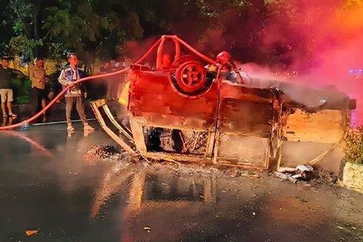 Hijet 1000 di Solo terbalik dan hangus terbakar hingga meledak sampai 5 kali. Begini kondisi kedua orang di dalam