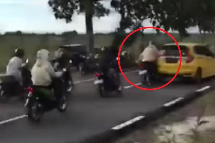 Viral di media sosial pengendara Honda Vario yang sedang melakukan balap liar hantam Honda Jazz di depannya.