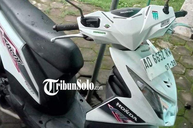 Honda BeAT tak bertuan ditemukan Bahrun, warga Ngemplak, Boyolali saat cek saluran irigasi persawahan. Posisi kunci menyala