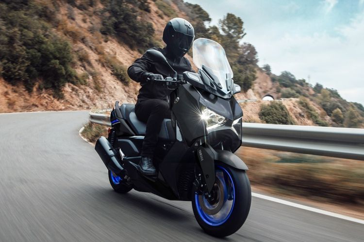 Yamaha XMAX Connected hadir dengan varian warna Premium Black, yang nyentrik dengan warna biru yang segar di beberapa bagian.