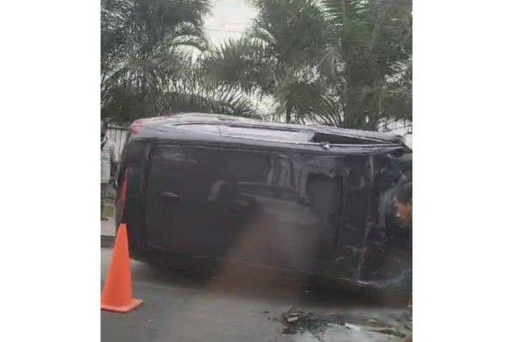Honda CR-V jungkir balik usai pak sopir kaget perkara disalip motor. Polisi sebut berawal saat mobil dalam kondisi ngebut