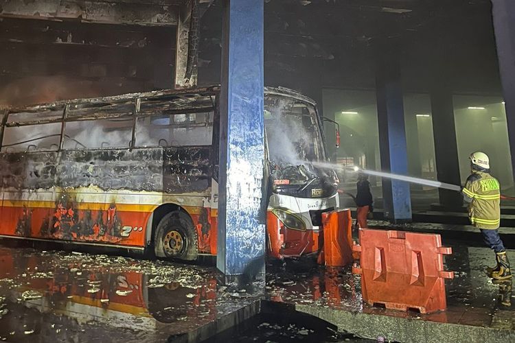 Bus bumel PO Rela terbakar hebat di dalam terminal Tirtonadi Solo saat parkir tidak beroperasi, habis seluruhnya