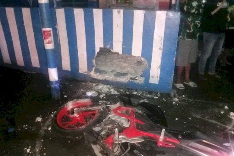 Honda CB150R ditunggangi 2 orang berboncengan hantam kencang tembok pos polisi di pertigaan jalan Kupang. Seketika keduanya berpulang