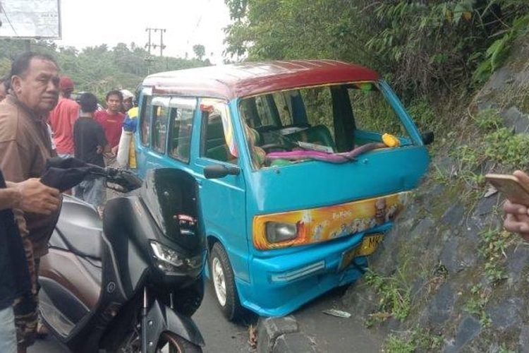 Angkot tujuan Politeknik Manado hantam tanggul tepi jalan di Jl AA Maramis Kairagi Mapanget kota Manado gara-gara sopir