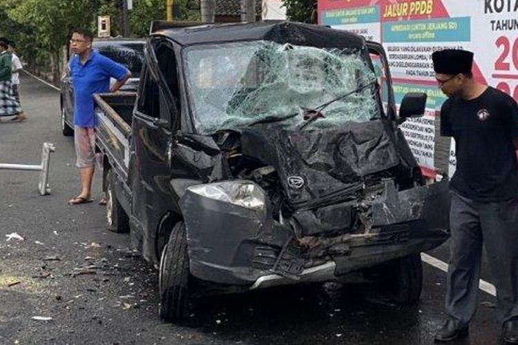 Daihatsu Gran Max Pikap wajah bak kena tonjok di Blitar. Ulah sopir diduga sedang dalam pengaruh minuman keras saat nyetir