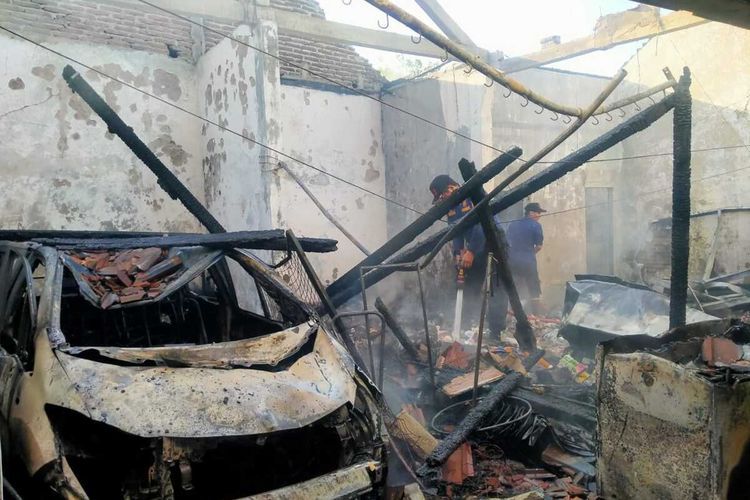 Sebuah toko di Ngrampal Sragen meledak dan terbakar hebat hingga menghanguskan seluruhnya, termasuk Honda Freed dan ditemukan jasad pria