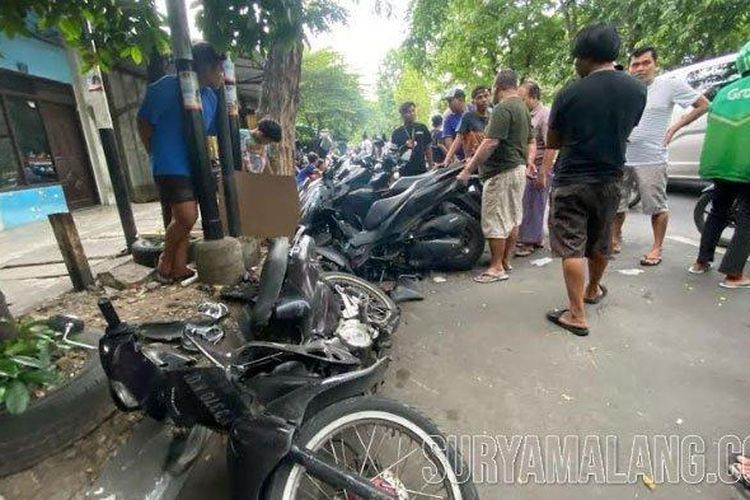 Ambulans berlogo partai mirip Mercy gasak 5 motor di pinggir jalan lalu pilih kabur. Saksi posisi ngebut tanpa menyalakan sirine