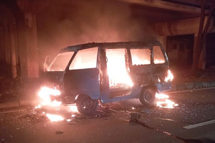 Suzuki Carry yang dijadikan angkot rute Lebakbulus-Parung terbakar hebat di Kebayoran Lama, Jakarta Selatan