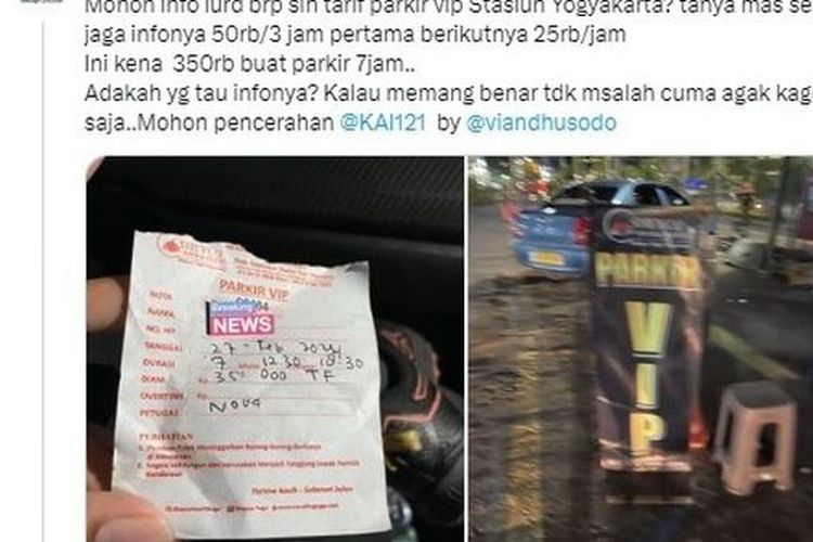 Heboh pertanyaan menunjukan foto karcis parkir mobil VIP di stasiun Tugu Jogja mahal, per jam dipatok Rp 50 ribu