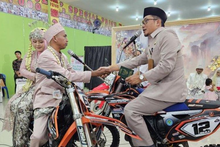 Konsep Nikah Massal Paling Kocak, Pengantin dan Penghulu Ijab Kabul Bagai Mau Trabasan Pakai Trail