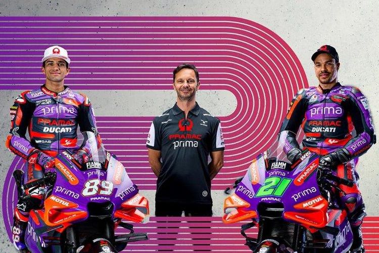 Tim Prima Pramac Racing yang merupakan tim satelit Ducati yang mengusung warna ungu kombinasi hitam ini hadir dengan livery baru serta formasi baru.