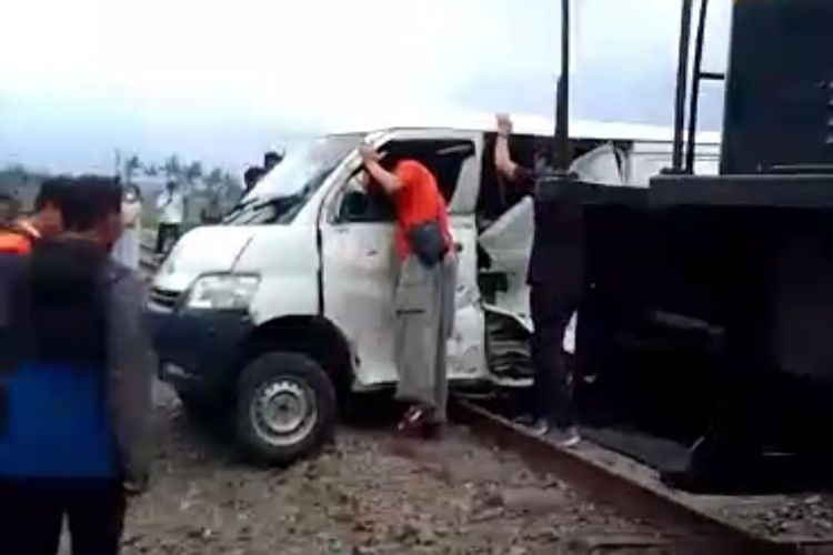 Daihatsu Gran Max Blind Van ditabrak kereta api wisata Ambarawa hingga ambyar sebelah, pintu geser tak terselamatkan