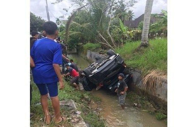 Honda Civic dikemudikan orang penting Padang Pariaman, atau Bupati jungkir balik di parit. Begini kronologi awal kecelakaan