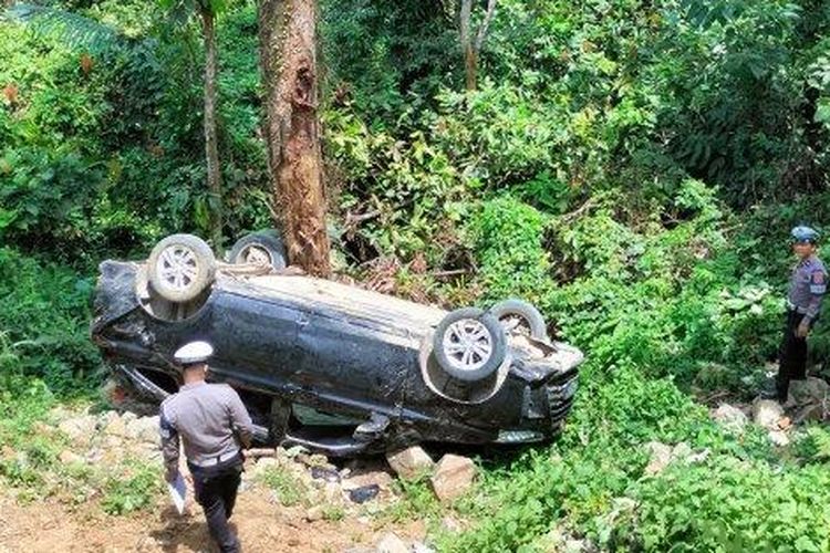 Toyota Avanza penggerak depan jungkir balik ke jurang sedalam 15 meter di Polewali Mandar, ban selip di tanjakan
