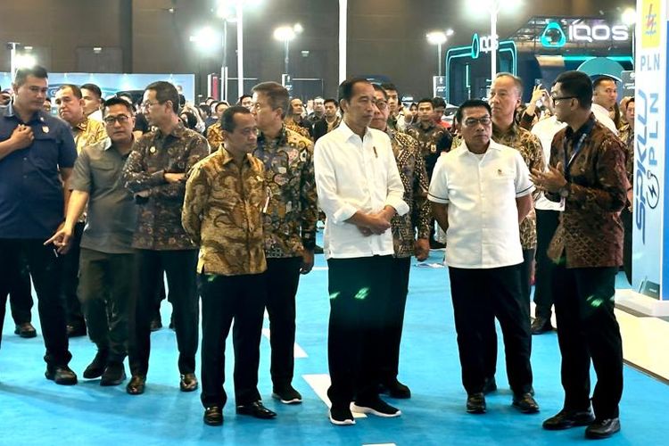 Jokowi mampir ke gelaran Periklindo Electric Vehicle Show (PEVS) 2024, di Jiexpo Kemayoran, Jakarta (3/5/2024). PEVS 2024