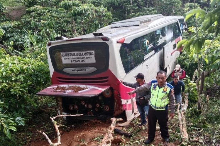 Bus AKAP rute Ranau-Muara Dua-Lampung terjun ke jurang sedalam 50 meter di Lampung Barat saat mengangkut 18 penumpang