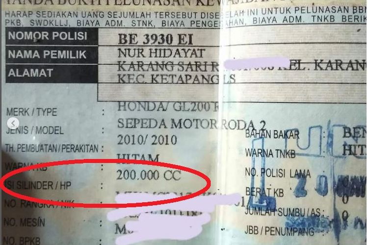 Honda Tiger Revo tahun 2010 ini berkapasitas mesin 200.000 cc, kesalahan dipastikan ada di petugas Samsat