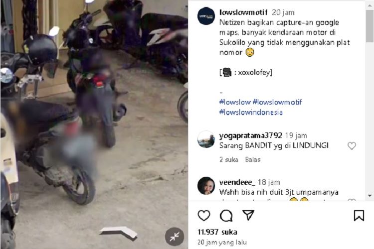 Viral Google Maps menangkap gambar motor-motor di Sukolilo Pati yang tidak menggunakan pelat nomor. Netizen langsung bereaksi begini