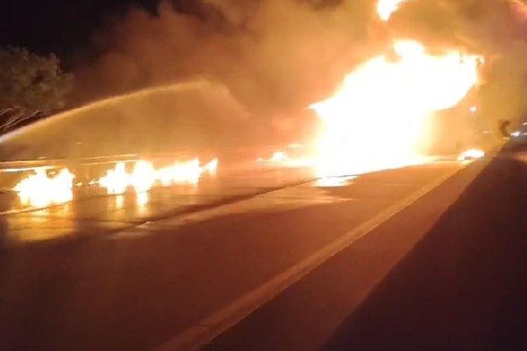 Penyebab truk tangki Pertamina muatan 16 ton Pertalite meledak dan terbakar hebat di tol Ngawi-Kertosono KM 580 Jawa Timur