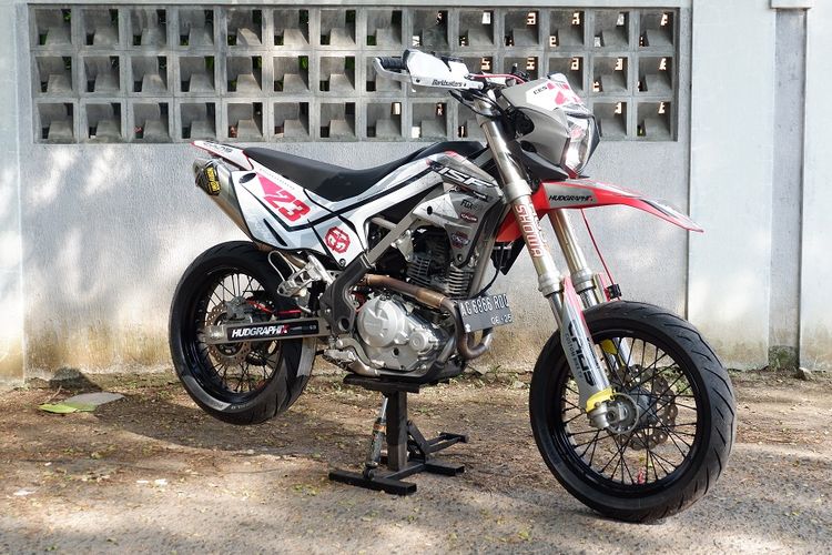 Modifikasi Kawasaki KLX230 menjadi sebuah supermoto oleh workshop Caos Custom Bike, mengubah motor trail jadi supermoto murni