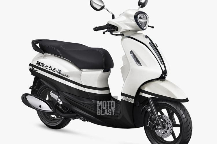 Digital modification Yamaha Grand Filano dengan livery ala Toyota AE86 dari serial anime Initial D hasil karya Motoblast