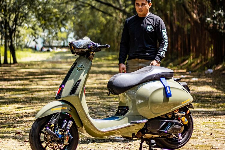 Alpukat Berbalut Karbon, Gaya Modifikasi Vespa Sprint Asal Cirebon