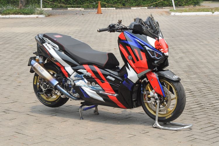 Modifikasi Yamaha XMAX tahun 2018 dengan livery helm Arai Quantum-X Wave bertema Jepang yang digarap oleh Rifky Hidayat