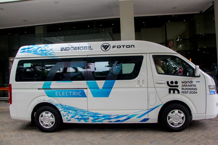 Para atlet Jakarta Running Festival (JRF) dimanjakan oleh Foton eView yang merupakan minibus listrik.