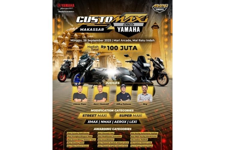 Kontes modifikasi tahunan skutik MAXi Yamaha, CUSTOMAXi 2025, berlangsung di Mal Ratu Indah (MaRI), Makassar,