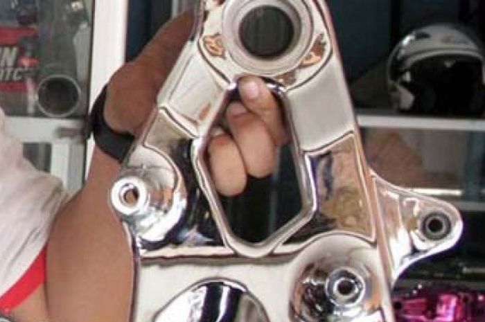 “Kami juga meyediakan jasa krom satuan utuk setiap sparepart,” sahut Sholeh, pemilik bengkel yang bisa Anda tanya–tanya dulu di 0812-13271223. Kalo udah jelas datang langsung ke Jl. R.M. Kahfi 2 No. 7 Cipedak 5, Jakarta Selatan. (motor.otomotifnet.com)