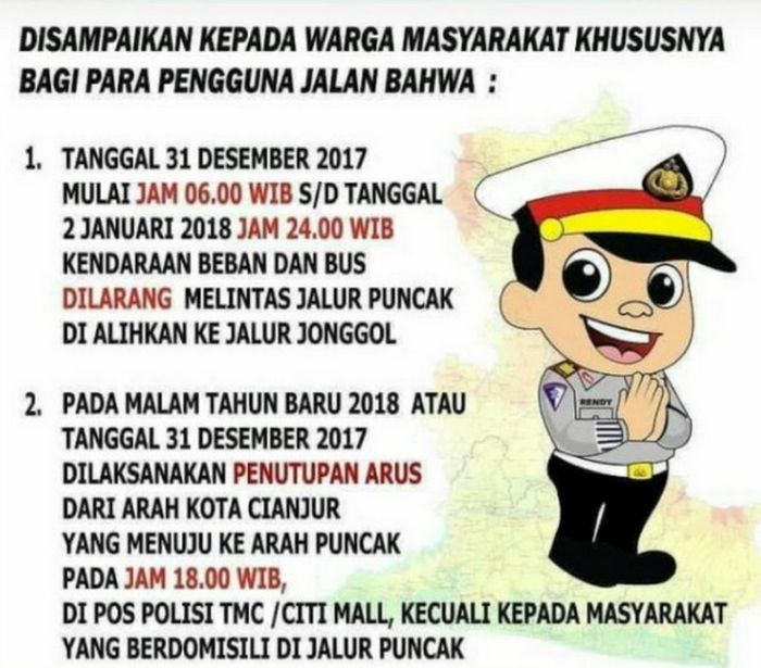 Nah, buat sobat yang ingin ke Puncak pada malam tahun baru, pihak Kepolisian menghimbau untuk mempersiapkan diri dan kendaraan.