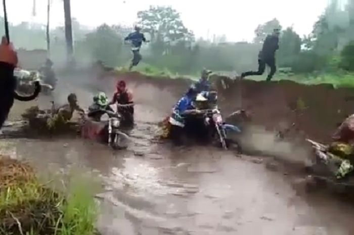 Hal tersebut terlihat pada pembalap-pembalap motor trail yang beraksi di dalam video yang diunggah oleh akun media sosial instagram @sukabalapmotor