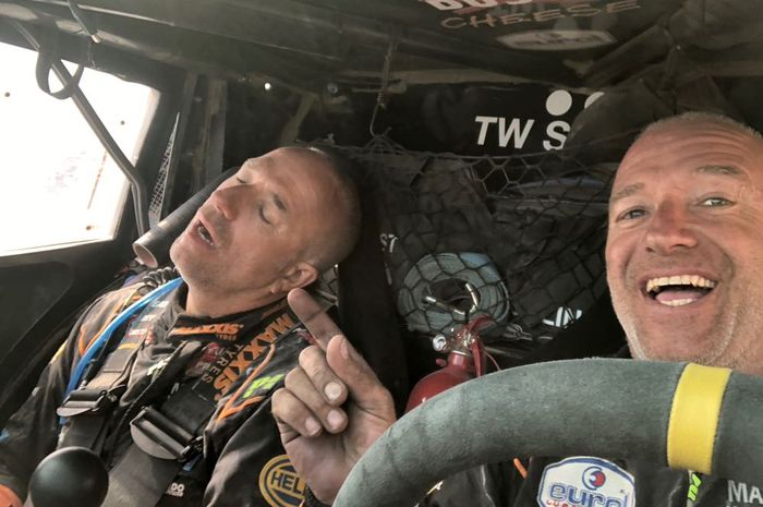 Ada kejadian lucu yang terjadi pada salah satu pembalap dan navigator dari Maxxis Dakar Team.