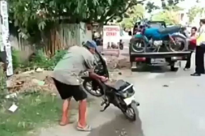 Otomotifnet.com - Seorang kakek membakar motornya sendiri di Kota Palu, Sulawesi Tengah.