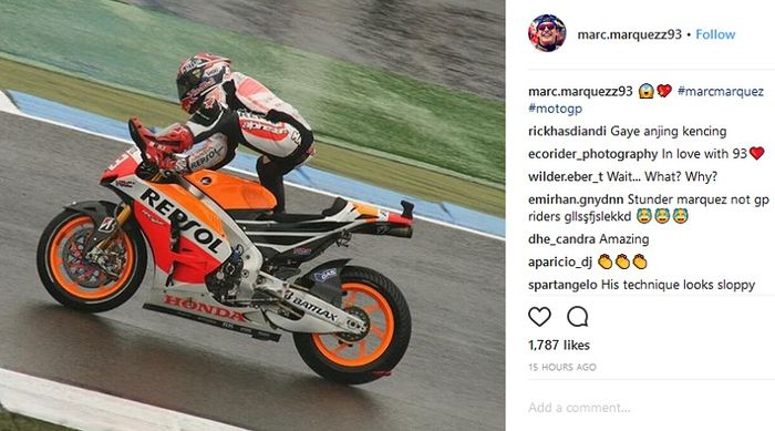 Aksi Marquez nantang bahaya ini diunggah akun Instagram @marc.marquez93.