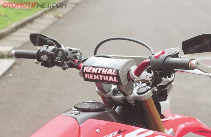 Pakai pelek bawaan kakak kandungnya, yaitu CRF250 Rally yang menurut Tino lebih kuat, kendati labelnya sama TK Japan.