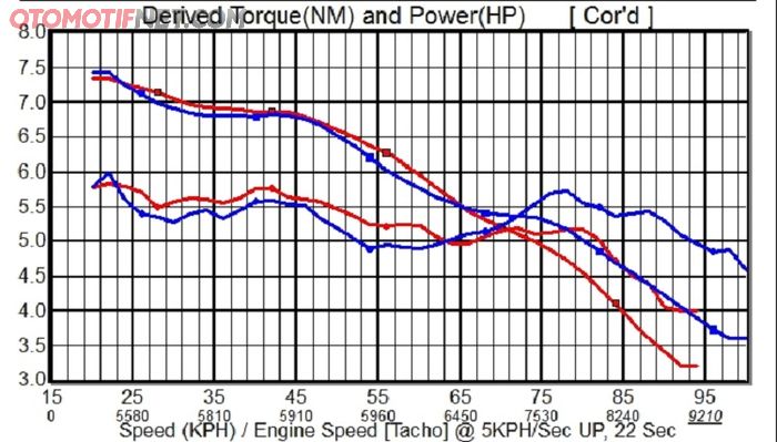 Di atas dyno, hasil tesnya cukup istimewa dengan menyeburkan tenaga 5,99 dk pada 5.547 rpm dengan torsi 7,4 Nm di 5.594 rpm.