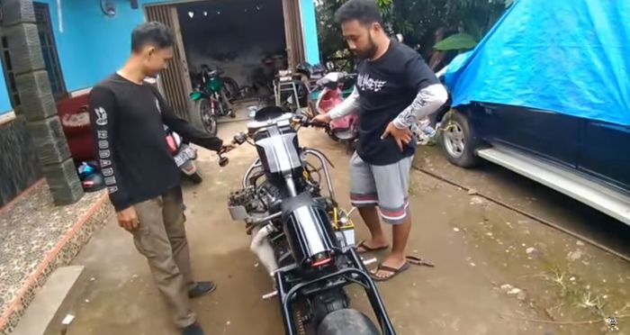 Masih menurut Bonyok, sapaan akrabnya, motor customnya ini panjangnya menjadi 2 meter diukur dari panjang roda depan ke belakang.