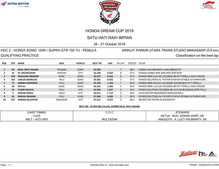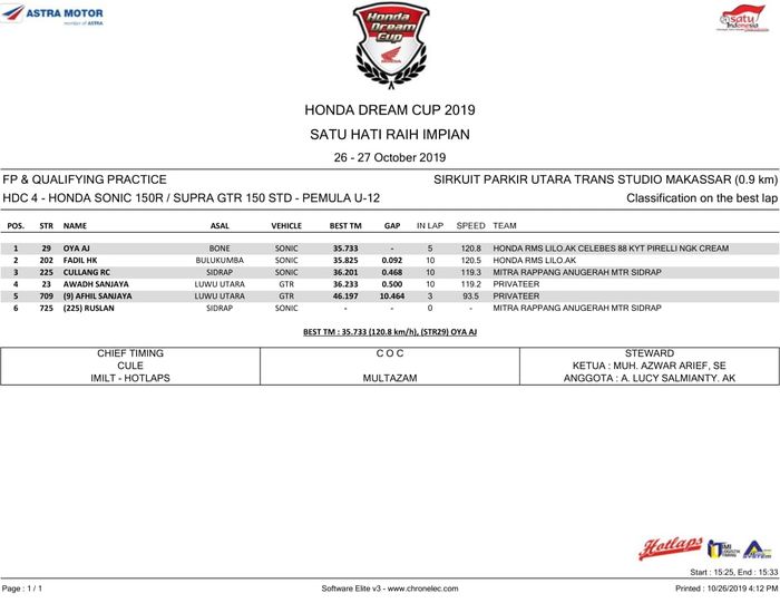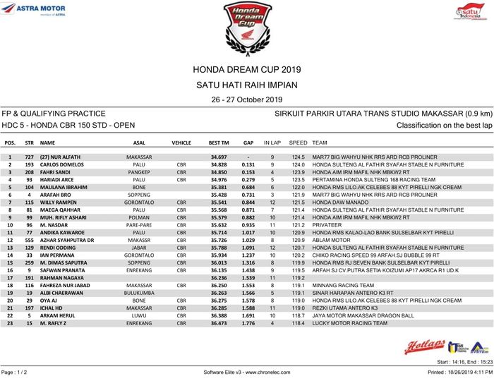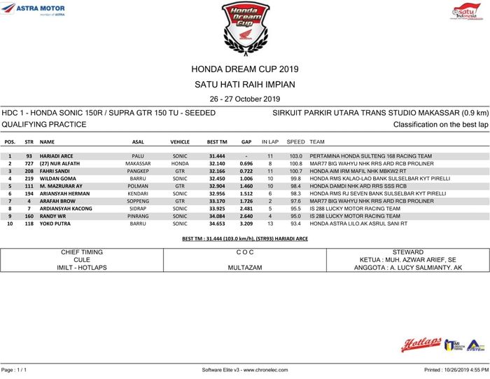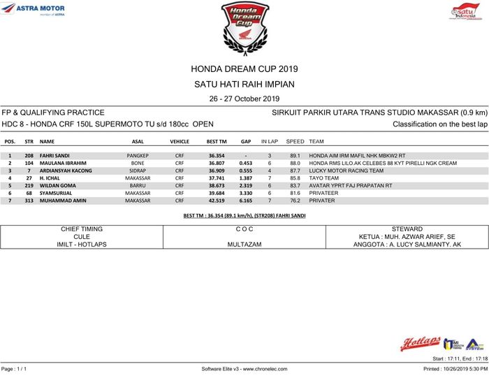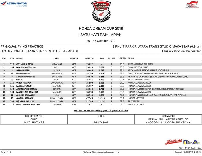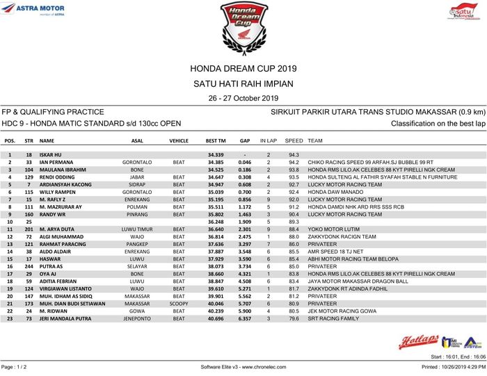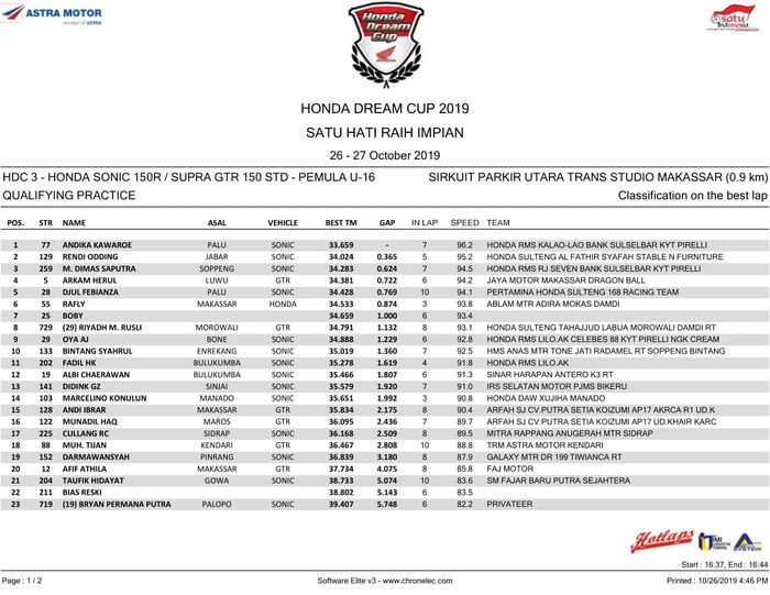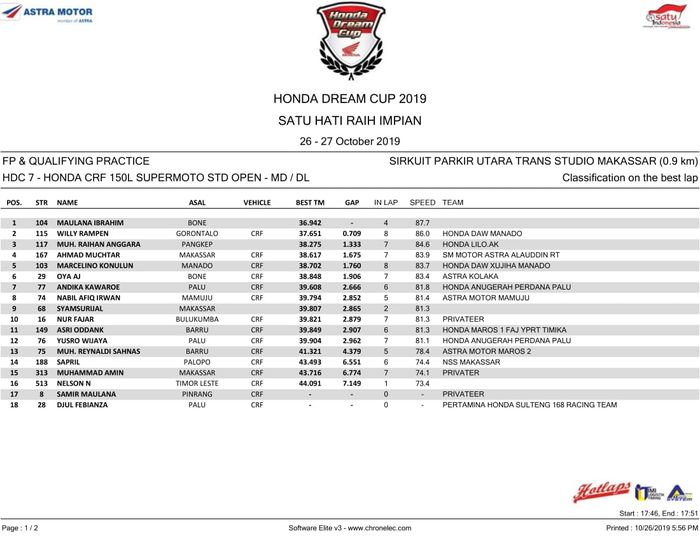 Honda Dream Cup 2019 Makassar Diserbu 167 Starter, Ini Hasil Kualifikasinya