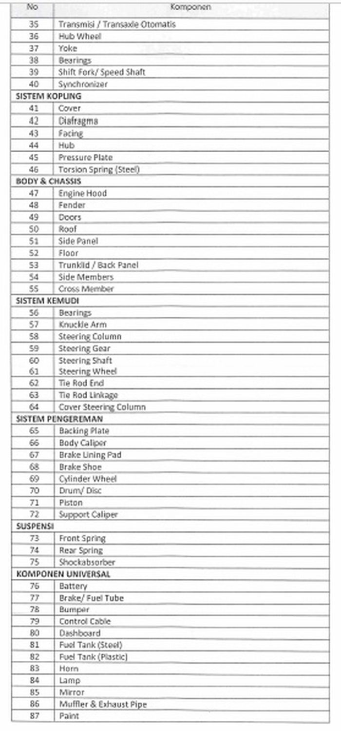 Daftar komponen lokal yang wajib dipenuhi dalam relaksasi PPnBM DTP, terlampir di halaman selanjutnya.